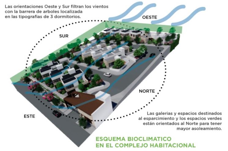 - 3) Cada casa está diseñada con el mismo criterio para reducir el consumo energético, aprovechar al máximo el asoleamiento y la ventilación cruzada.