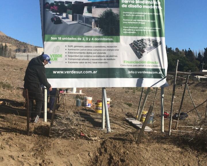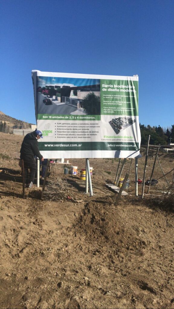 Luego de la limpieza del campo, avanzamos con la colocación del gran cartel para quien comience a visitar pueda localizar correctamente el lugar y enterarse mas sobre el proyecto.